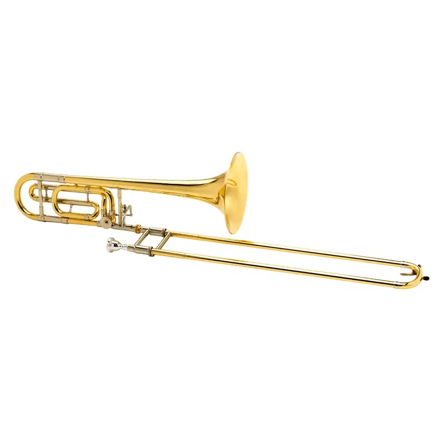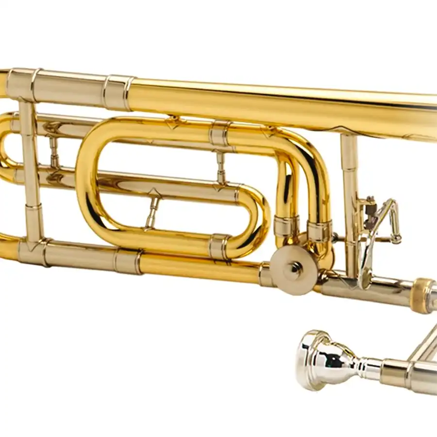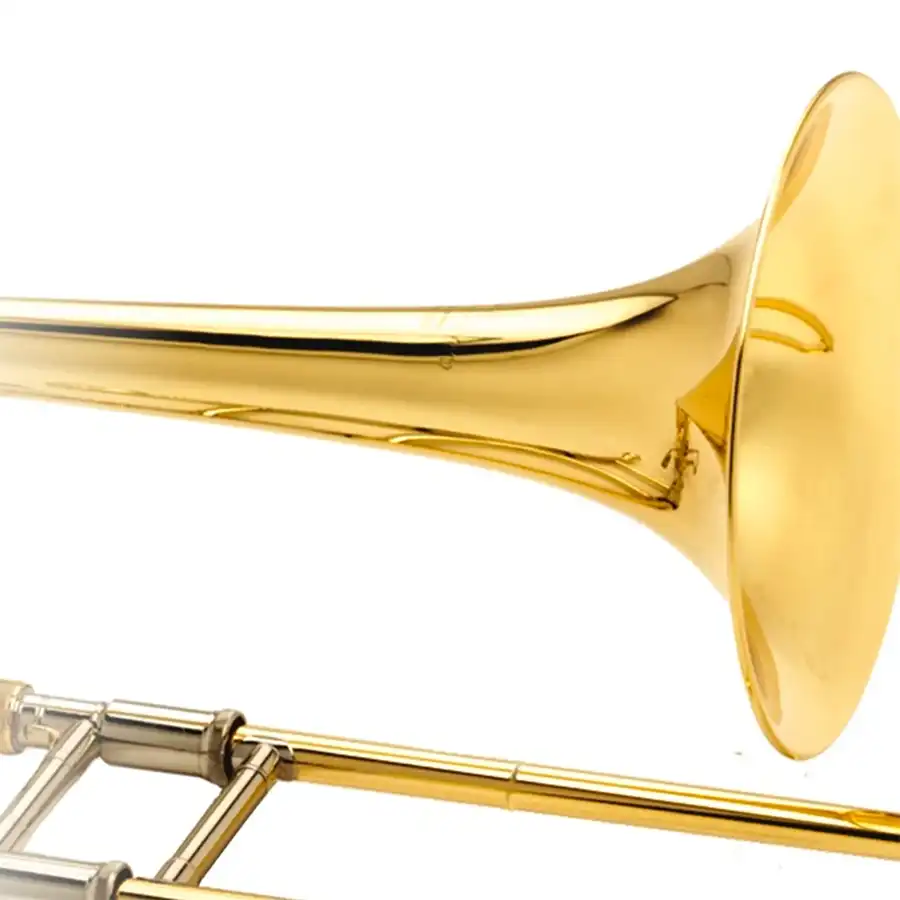 Este instrumento tiene una campana de una sola pieza hecha a mano con latón amarillo, la cual nos da un sonido versátil y firme; su vara es de latón amarillo con interior de plata de nickel.