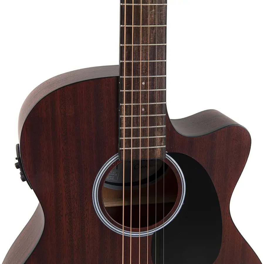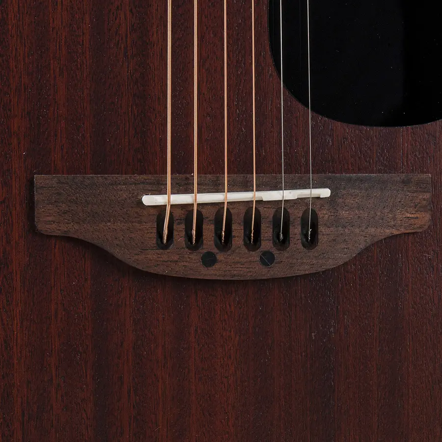 - Esta guitarra está construida completamente con caoba, exceptuando el puente y el diapasón, fabricados de ovangkol.